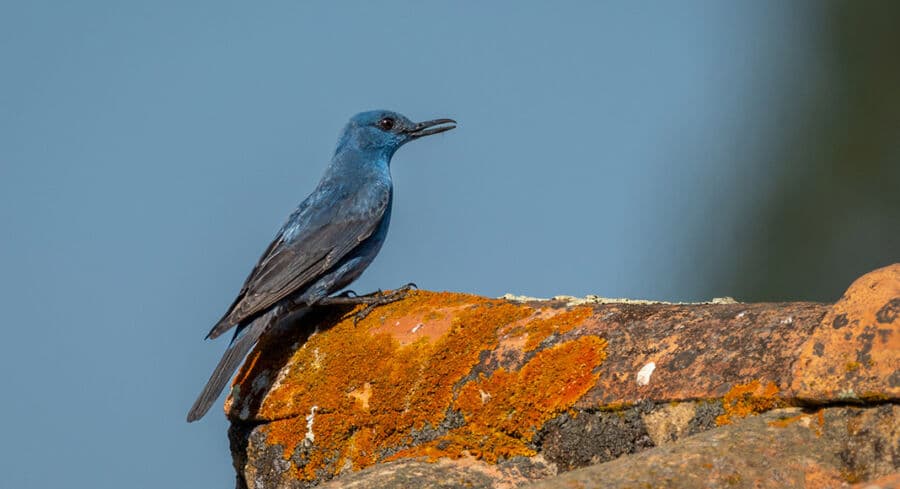 Being a similar size to a starling, both sexes grow up to 23cm in length. There are always two important points which usually have me grabbing for the binoculars – firstly, being solitary, they are not found in flocks and, secondly, the blue rock thrush has a long slim bill which I often see them holding slightly open.