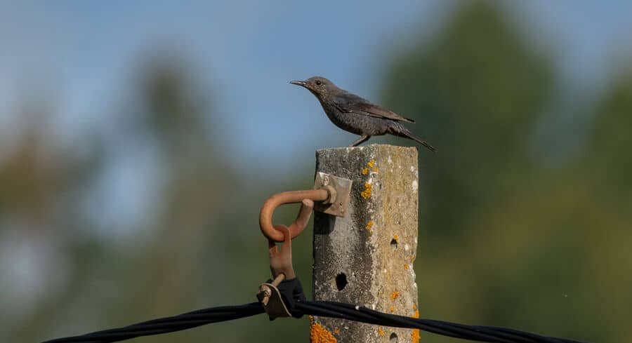 Belonging to the Chat family, the blue rock thrush is a resident bird (it does not migrate) and can be spotted all-year round. As the name suggests, they prefer rocky mountainous areas to breed which can include cavities in rocky terrain or buildings with suitable holes. Given the vast choice of ruins in the Algarve hills, these provide perfect, ready-made nesting sites. This favoured rocky terrain also includes coastal cliffs and I spotted a male a few months ago near the Igreja de Nossa Senhora da Rocha, the popular clifftop church, near Porches.
