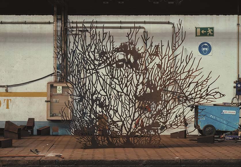 The project is a partnership between Portuguese artist Alexandre Farto (better known as Vhils) and EDP, which challenged the artist to use old parts from deactivated EDP plants to create thirteen artworks, which will be sunken to create what they call an “new artificial reef.”