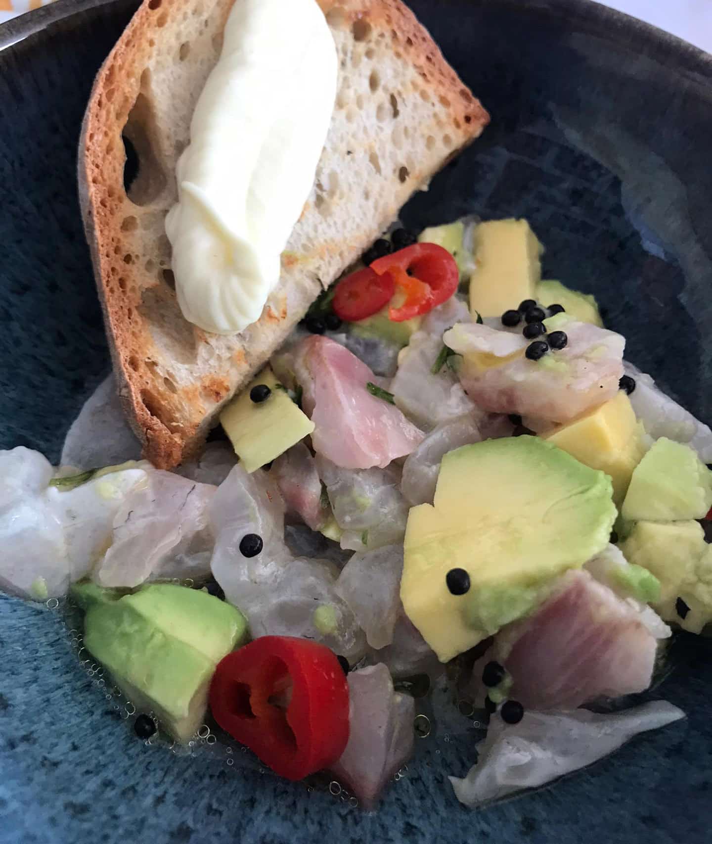The Chef of Chefs, as Noélia is known, did not disappoint! She amazed us with an incredible array of the freshest fish and shellfish straight from the local market, all treated with the greatest respect for the product, whether it was a tempura of gambas with spicy mango or a ceviche of Dourada, or a dish of rice and local red prawns (Carabineiros) with baby asparagus…