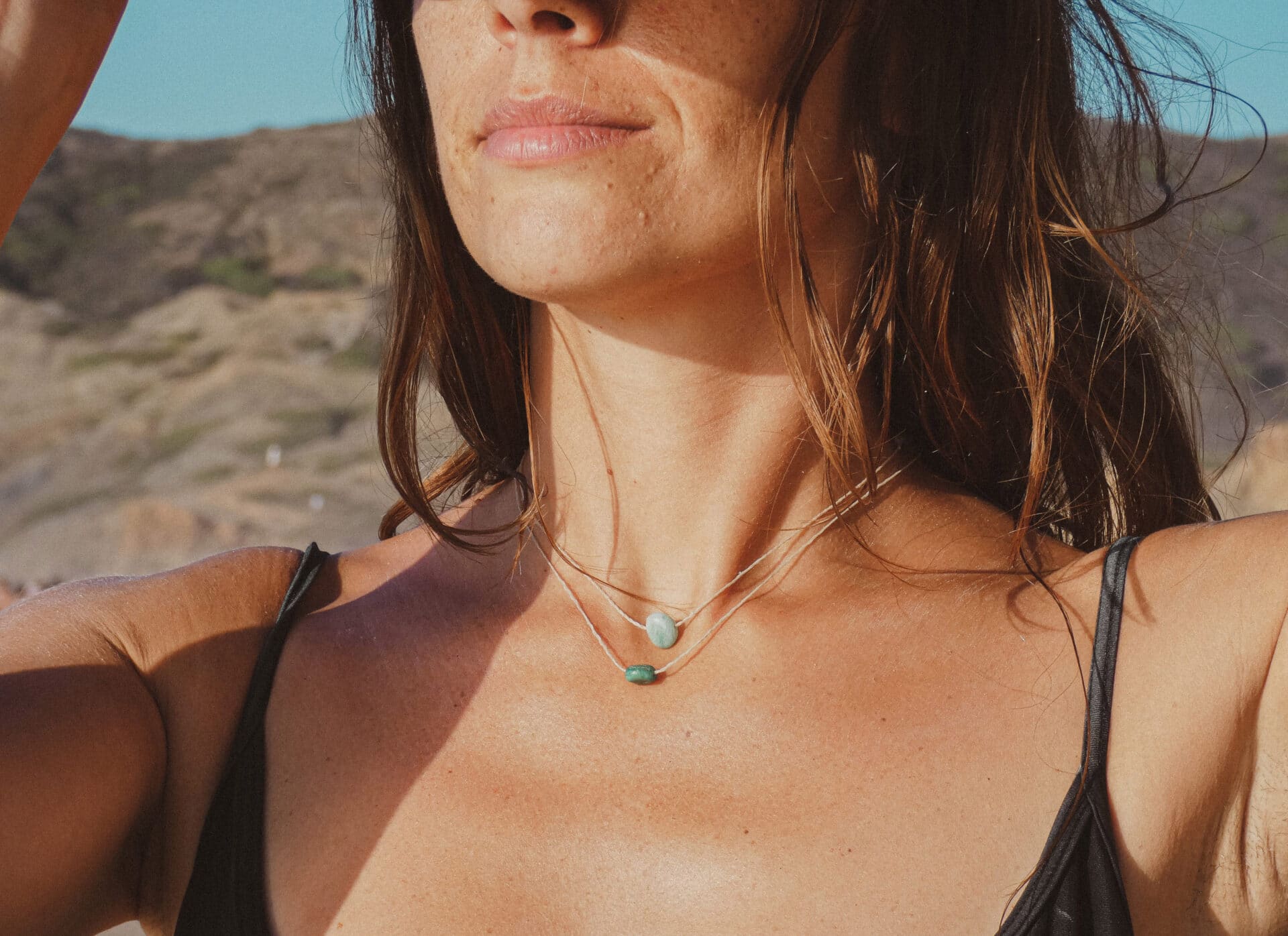 Nowadays, the LUZALBA Original necklace is a solid product recognised by many customers around the world. Daniela uses amazonite gemstone in her pieces, which is said to have “healing properties, and can help with self-discovery and in the empowering of the search of our own truths”. It is commonly known as the stone of courage and, throughout history, it was believed that legendary female warriors used the gemstone to turn their anxieties into harmony and balance.