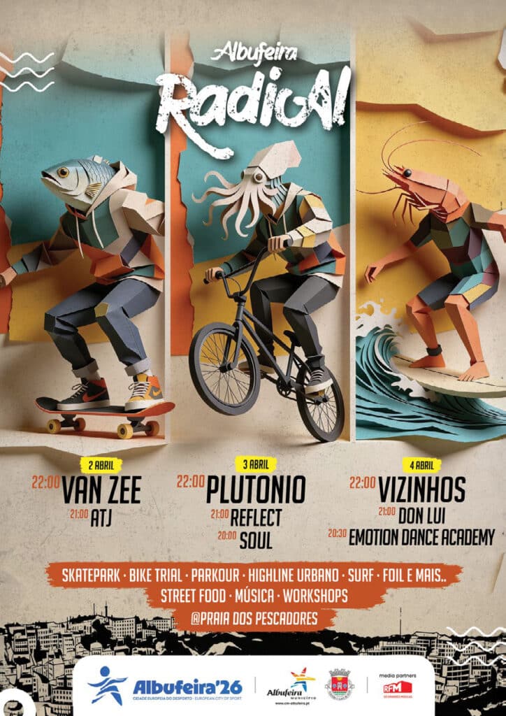 The event is aimed at younger audiences and focuses on radical sports such as skate and BMX, live music and street culture, turning Albufeira’s famous beachside square into a hub of activity over three days.