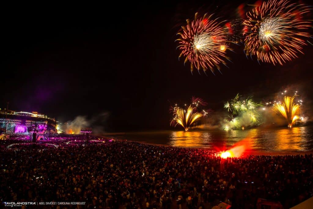 Festivities continued on January 1 with a New Year’s Day concert by another popular Portuguese act, Quatro e Meia, also at Praia dos Pescadores, preceded by an aerial choreography involving two planes releasing coloured smoke.