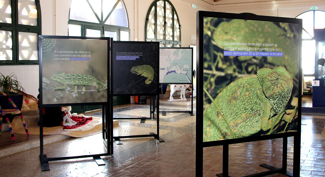 Castro Marim market is hosting an exhibition showcasing photos of chameleons, a lizard species which in Portugal is only found in the Algarve, along with some interesting information about these peculiar animals.