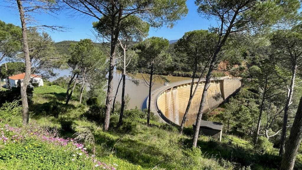 Last week, in fine sunshine, ASB took to the back roads of the western Algarve. Ride organisers and leaders, Andrew Chilton, Ralf Wennergren, David Ryan and Phil Anderson, guided more than 25 bikes, in two groups, from the start point near Odiáxere, to firstly, inspect the highest water levels for many years at the Barragem da Bravura (dam), where water continues to spill past the overflows channels.