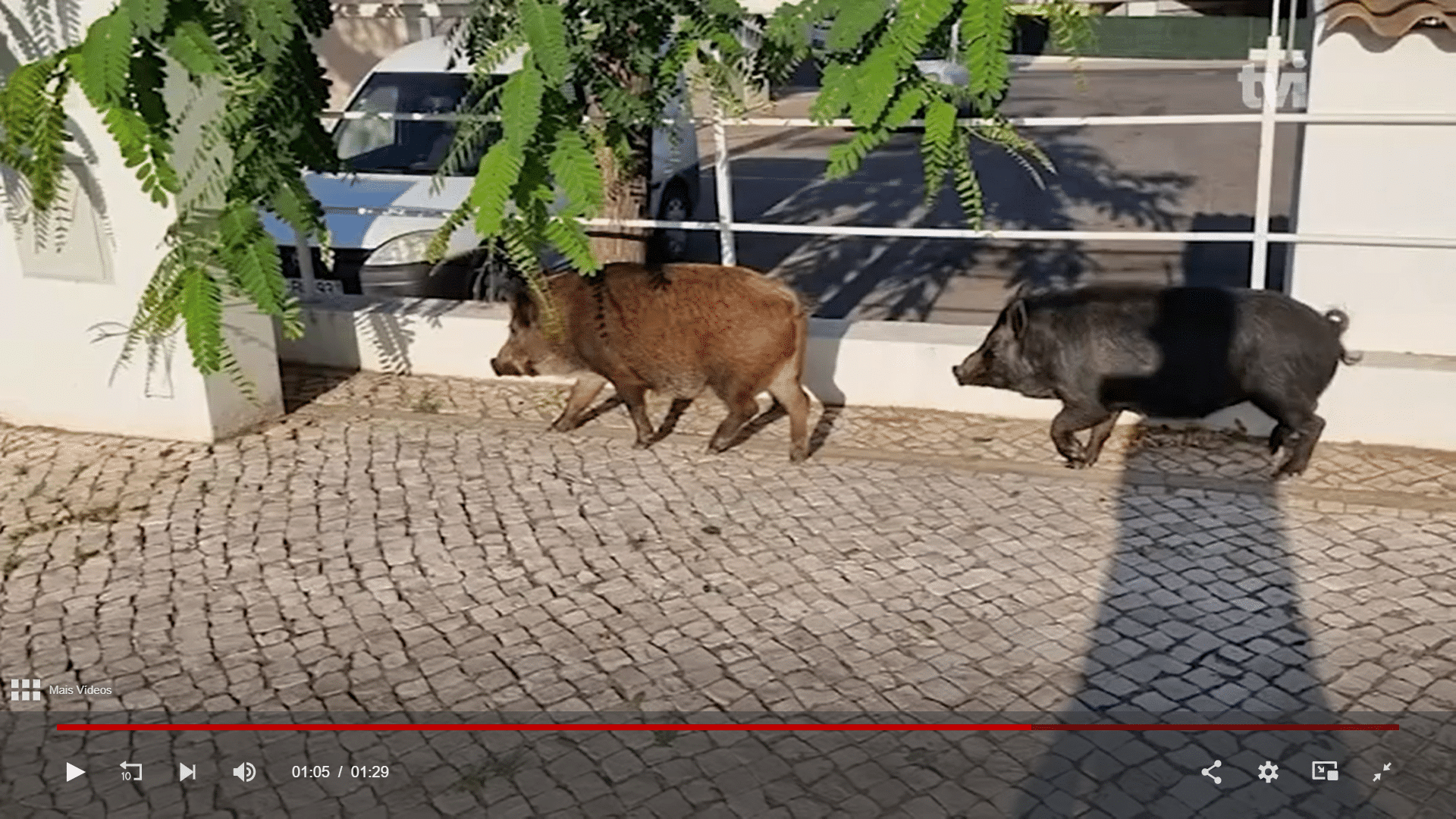 A pair of pigs have become local celebrities in Albufeira today, starting bright and early with a contended walkabout near Olhos d’Água. “They seemed very happy with life”, a local