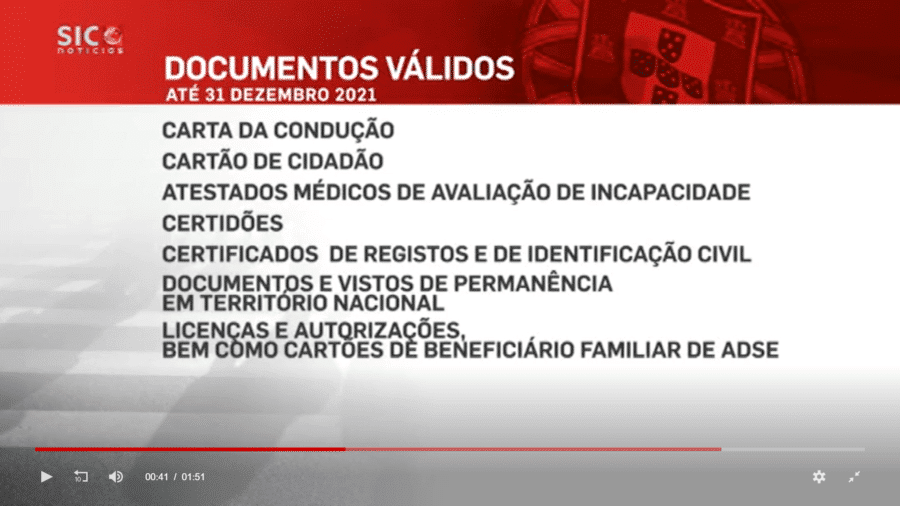 A new law published today by the government extends expiry dates on official documents to December 31 this year. Documents included are ‘cartões de cidadão’ (Citizens Cards), driving licences, medical