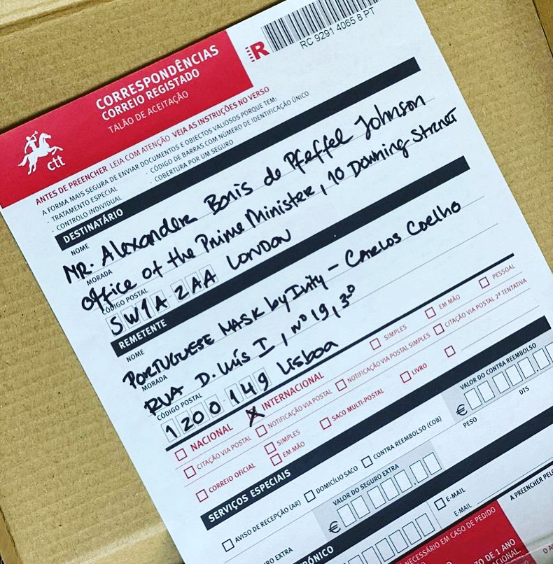 Portuguese face masks on way to Downing Street