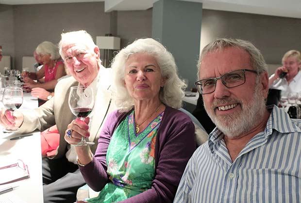 Derek Lambert with Madlen and Helwig Ehlers – their vineyard, Helwigus Single Vineyard, is located just outside Santa Bárbara de Nexe Martin and Kirsten Sutton Nigel Adams and Pat Ryan