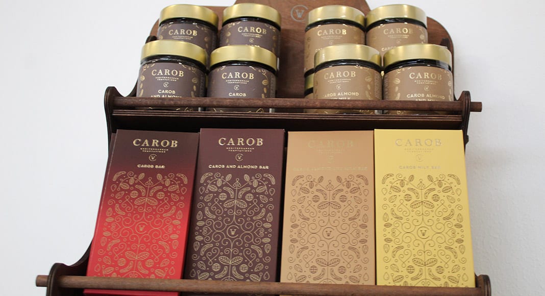 Carob World sells four carob bars (carob; carob and almond; carob, almond and milk; and carob and milk), two carob spreads (carob and almond; and carob, almond and milk), carob flour and a box filled with what it calls “Mediterranean Secrets”, containing miniature versions of all of its products.