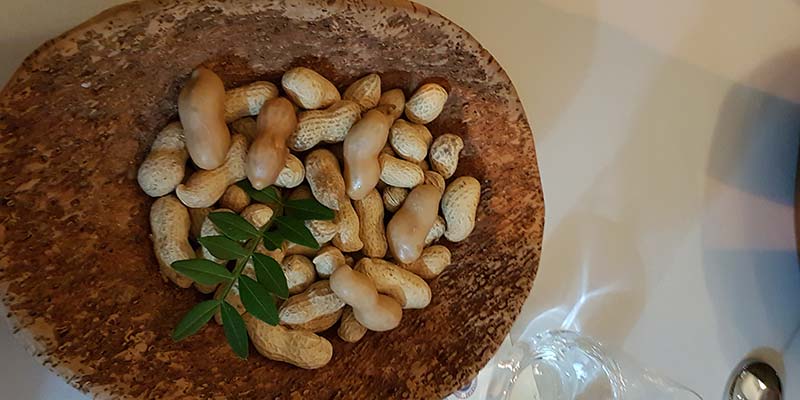 Chef Louis Anjos, sous-chef Ricardo Luz and pastry chef Raul Cachola had promised a menu which contained Portuguese, French and Nordic influences and started with their amuse bouche of nuts. Beautifully displayed on wood and cork dishes were walnuts and peanuts constructed of a delicate shell filled with cheese and chicken mousses. Care was needed not to select the natural nuts but to go for the constructed delights.