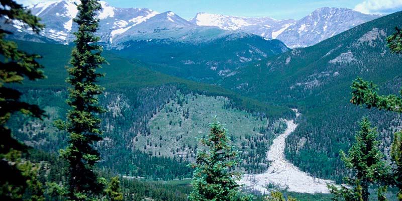 Covering little more than 400 square miles, Colorado’s Rocky Mountain National Park boasts a stunning array of more than 100 mountain peaks over 11,000 feet, forests of spruce and fir, glacial lakes and an extensive area of alpine tundra. Its spectacular landscape is fraught with blizzards in winter and its lowland meadows filled with wild flowers during the summer months.