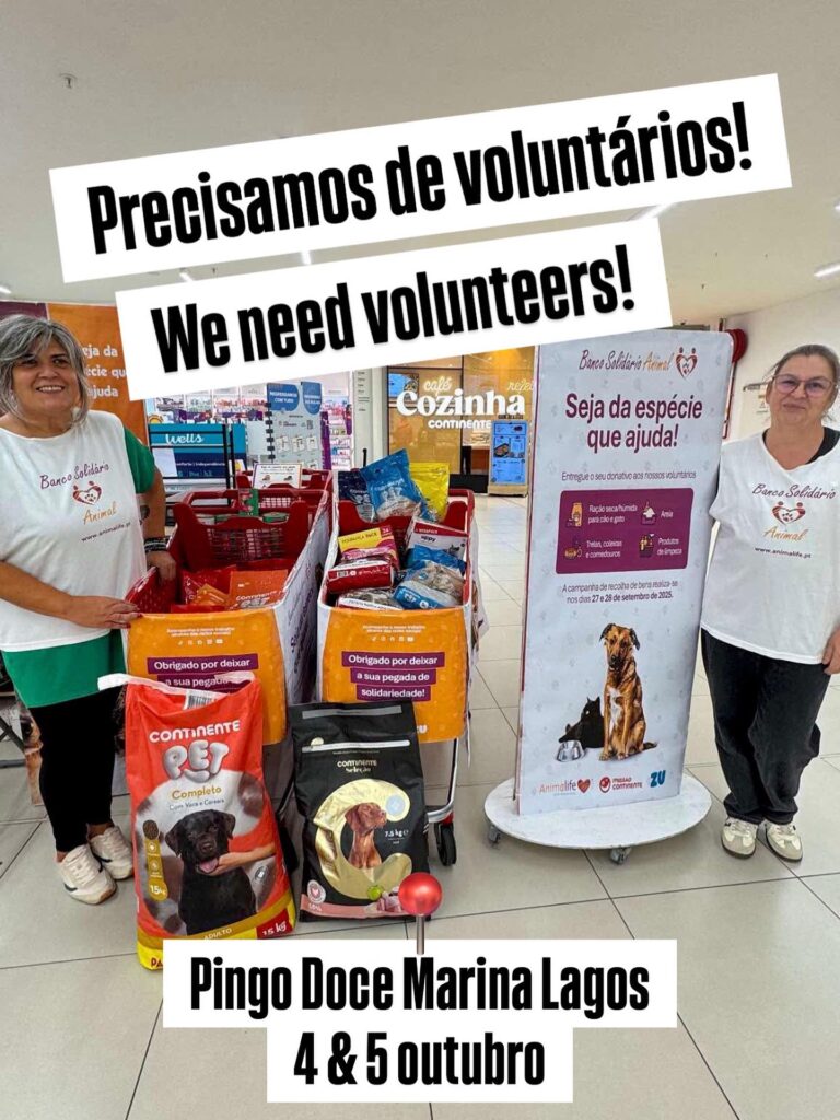 This weekend, our volunteers will be everywhere — at Pingo Doce da Marina for the October 4–5 food drive, at the TIBI Animal Walk, and at our major fundraising exhibition in the heart of Lagos. The energy of this community is inspiring, but it also shows just how much help we need. With over 80 dogs and 50 cats in our care, every new emergency is a challenge.