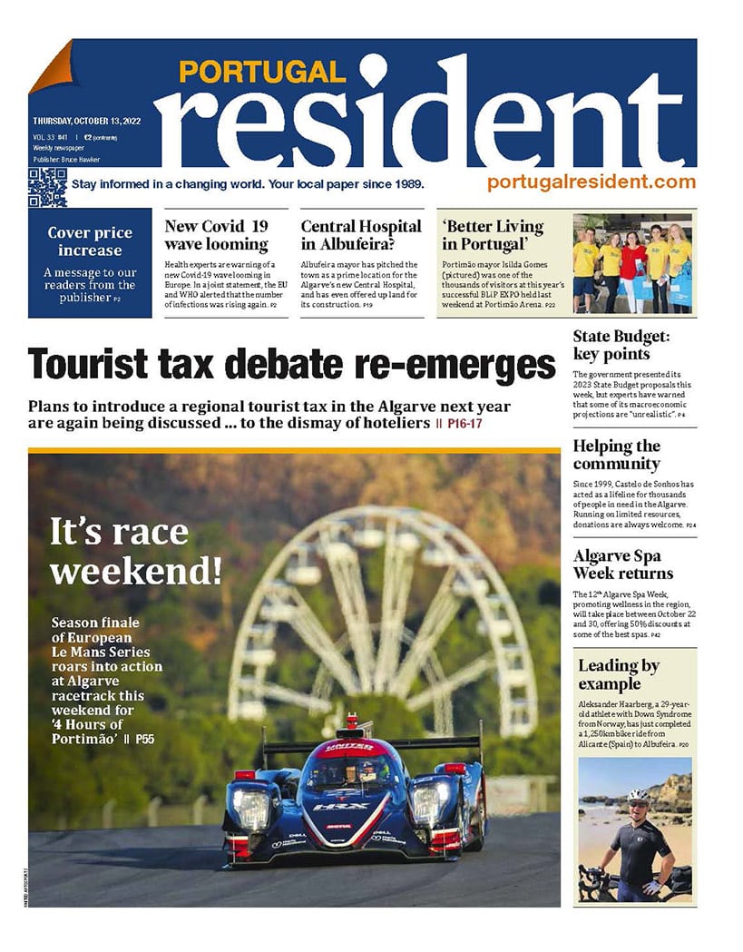 December 1, 2022 December 1, 2022by Portugal ResidentNovember 24, 2022 November 24, 2022by Portugal ResidentNovember 17, 2022 November 17, 2022by Portugal ResidentNovember 10, 2022 November 10, 2022by Portugal ResidentNovember 3, 2022 November 3, 2022by Portugal ResidentOctober 27, 2022 October 27, 2022by Portugal ResidentOctober 20, 2022 October 20, 2022by Portugal ResidentOctober 13, 2022 October 17, 2022by Portugal ResidentOlder postsNewer posts← PreviousPage1…Page12Page13Page14…Page28Next → CloseHomeNewsPortugalPorto & NorthCentreLisbonAlentejoAlgarveAzores & MadeiraCommunityBusinessSportPoliticsOpinionLifestyleFood & DrinkGardeningHealth & BeautyLeisureMotoringNaturePet CornerTravelPortugal EventsMorePropertyEconomy & FinanceEducationHistoryScience & TechnologySecuritySearch for:
