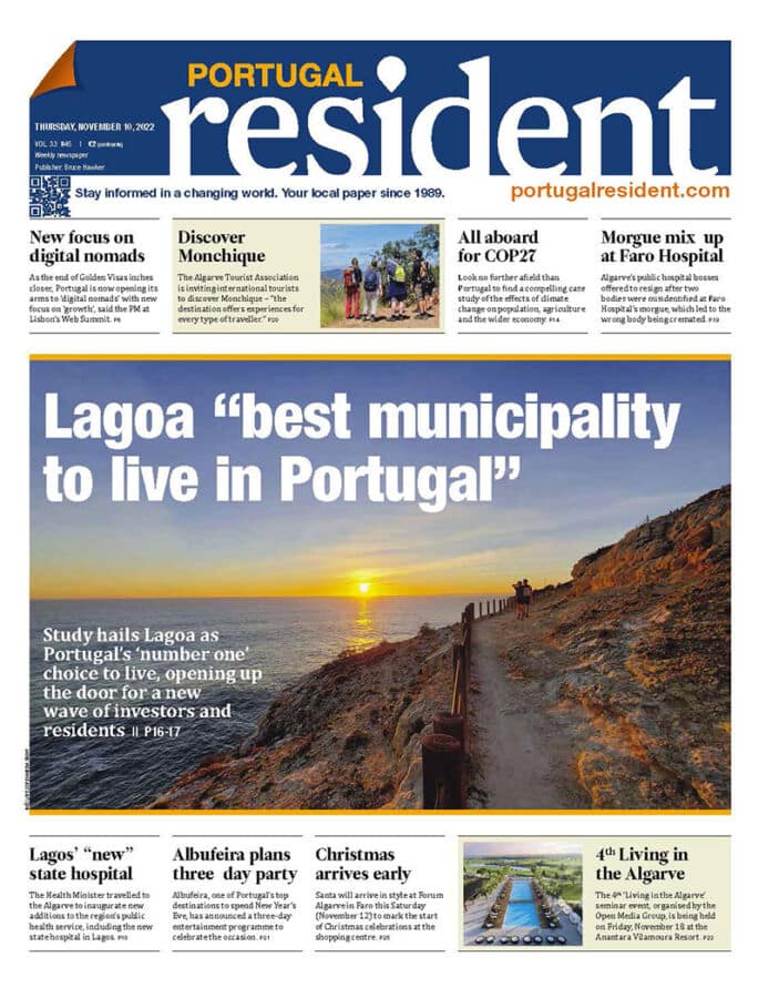 November 10, 2022 November 10, 2022by Portugal ResidentNovember 3, 2022 November 3, 2022by Portugal ResidentOctober 27, 2022 October 27, 2022by Portugal ResidentOctober 20, 2022 October 20, 2022by Portugal ResidentOctober 13, 2022 October 17, 2022by Portugal ResidentOlder postsNewer posts← PreviousPage1…Page12Page13Page14…Page28Next → CloseHomeNewsPortugalPorto & NorthCentreLisbonAlentejoAlgarveAzores & MadeiraCommunityBusinessSportPoliticsOpinionLifestyleFood & DrinkGardeningHealth & BeautyLeisureMotoringNaturePet CornerTravelPortugal EventsMorePropertyEconomy & FinanceEducationHistoryScience & TechnologySecuritySearch for: