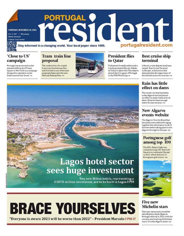 November 24, 2022 November 24, 2022by Portugal ResidentNovember 17, 2022 November 17, 2022by Portugal ResidentNovember 10, 2022 November 10, 2022by Portugal ResidentNovember 3, 2022 November 3, 2022by Portugal ResidentOctober 27, 2022 October 27, 2022by Portugal ResidentOctober 20, 2022 October 20, 2022by Portugal ResidentOctober 13, 2022 October 17, 2022by Portugal ResidentOlder postsNewer posts← PreviousPage1…Page12Page13Page14…Page28Next → CloseHomeNewsPortugalPorto & NorthCentreLisbonAlentejoAlgarveAzores & MadeiraCommunityBusinessSportPoliticsOpinionLifestyleFood & DrinkGardeningHealth & BeautyLeisureMotoringNaturePet CornerTravelPortugal EventsMorePropertyEconomy & FinanceEducationHistoryScience & TechnologySecuritySearch for:
