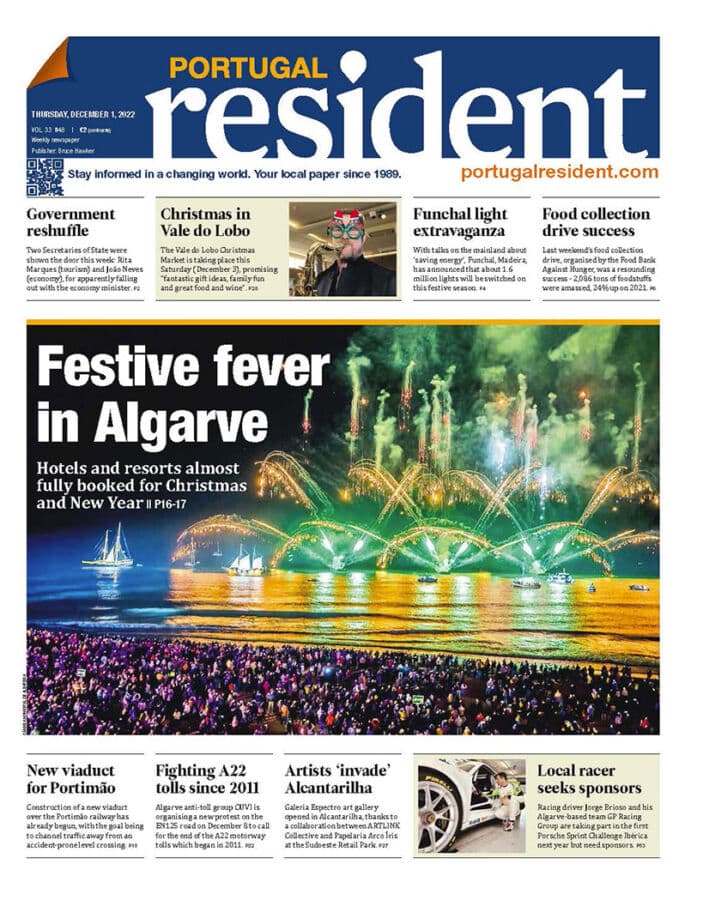 December 15, 2022 December 15, 2022by Portugal ResidentDecember 8, 2022 December 8, 2022by Portugal ResidentDecember 1, 2022 December 1, 2022by Portugal ResidentNovember 24, 2022 November 24, 2022by Portugal ResidentNovember 17, 2022 November 17, 2022by Portugal ResidentNovember 10, 2022 November 10, 2022by Portugal ResidentNovember 3, 2022 November 3, 2022by Portugal ResidentOctober 27, 2022 October 27, 2022by Portugal ResidentOctober 20, 2022 October 20, 2022by Portugal ResidentOctober 13, 2022 October 17, 2022by Portugal ResidentOlder postsNewer posts← PreviousPage1…Page12Page13Page14…Page28Next → CloseHomeNewsPortugalPorto & NorthCentreLisbonAlentejoAlgarveAzores & MadeiraCommunityBusinessSportPoliticsOpinionLifestyleFood & DrinkGardeningHealth & BeautyLeisureMotoringNaturePet CornerTravelPortugal EventsMorePropertyEconomy & FinanceEducationHistoryScience & TechnologySecuritySearch for: