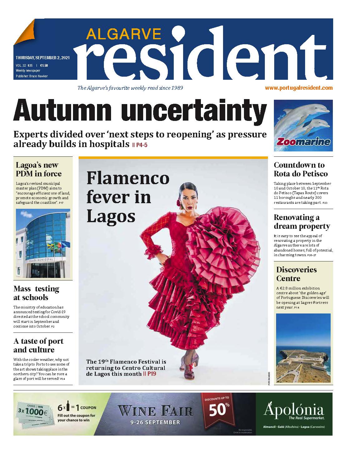 September 16, 2021 September 16, 2021by Portugal ResidentSeptember 9, 2021 September 9, 2021by Portugal ResidentSeptember 2, 2021 September 2, 2021by Portugal ResidentAugust 26, 2021 August 26, 2021by Portugal ResidentAugust 19, 2021 August 19, 2021by Portugal ResidentAugust 12, 2021 August 12, 2021by Portugal ResidentOlder postsNewer posts← PreviousPage1…Page18Page19Page20…Page28Next → CloseHomeNewsPortugalPorto & NorthCentreLisbonAlentejoAlgarveAzores & MadeiraCommunityBusinessSportPoliticsOpinionLifestyleFood & DrinkGardeningHealth & BeautyLeisureMotoringNaturePet CornerTravelPortugal EventsMorePropertyEconomy & FinanceEducationHistoryScience & TechnologySecuritySearch for: