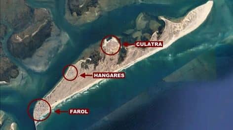 Aerial view of Culatra island, showing three ‘nuclei’ of Farol, Hangares and Culatra. No demolitions are planned in Culatra, just in Farol and Hangares.