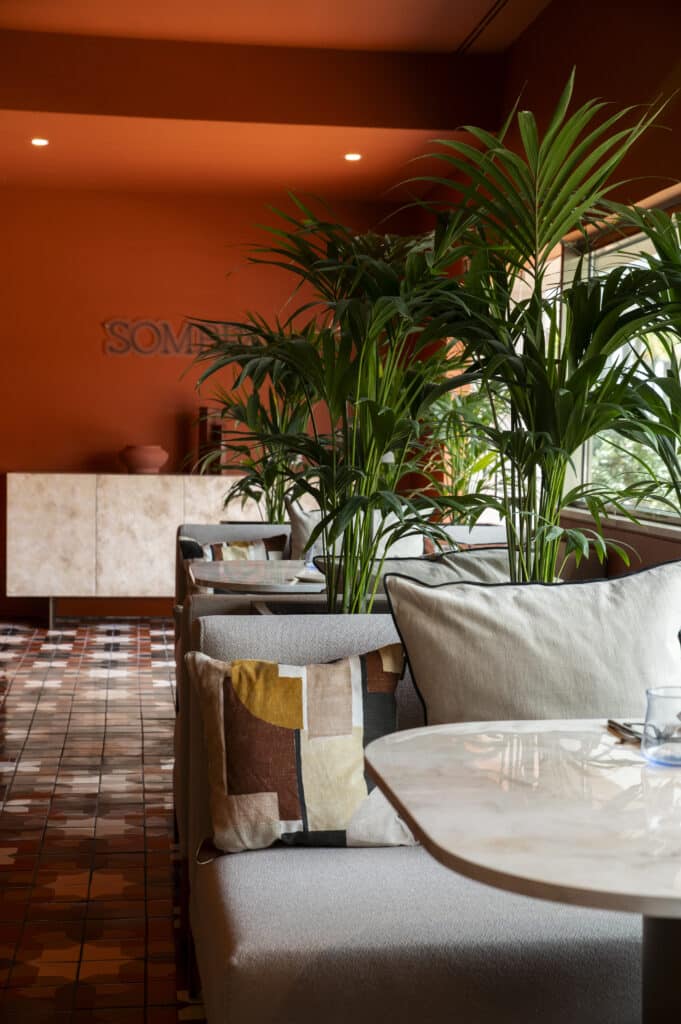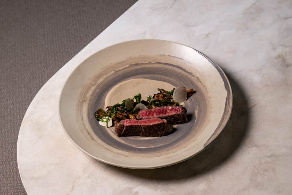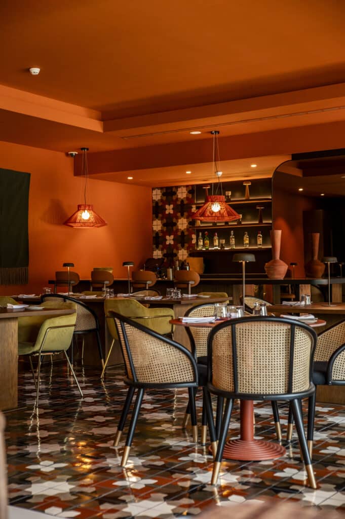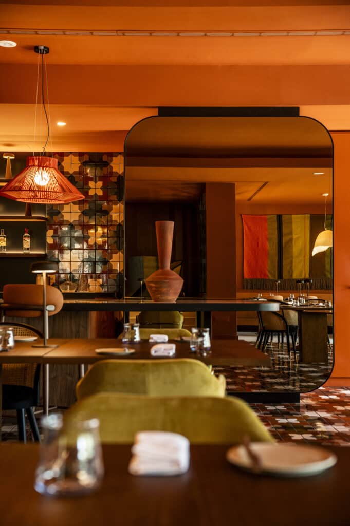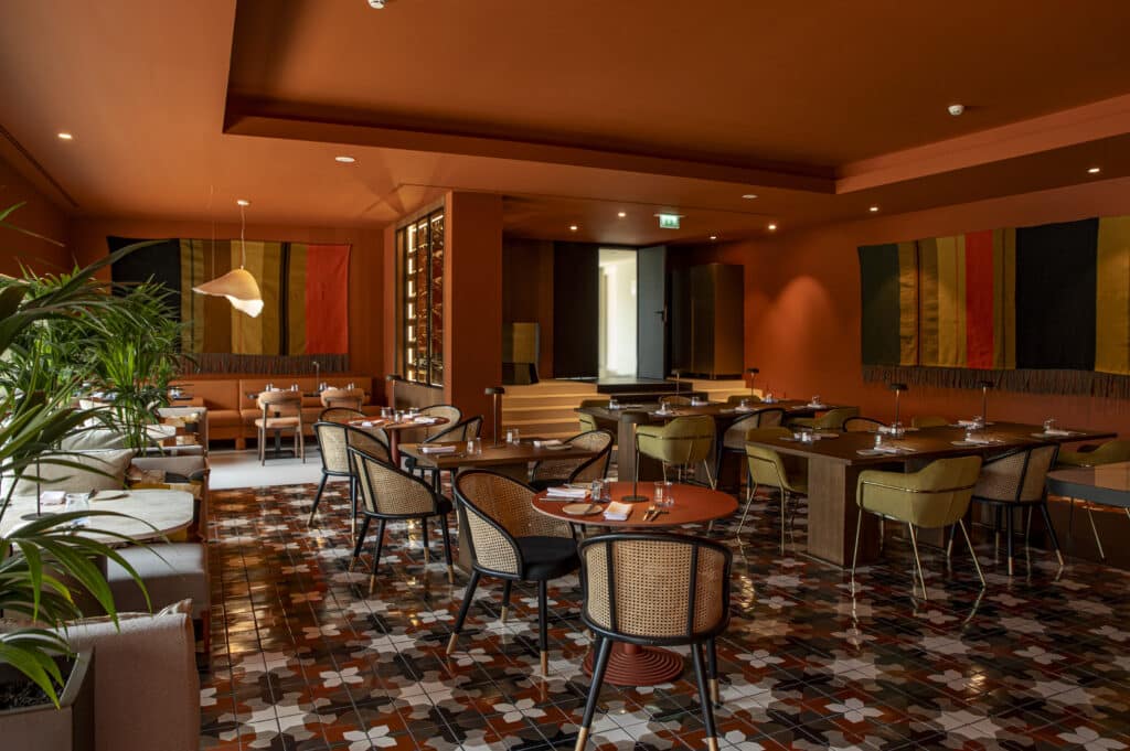 Designed by Nini Andrade Silva, the restaurant’s interior features “natural textures and warm tones, combining stone, linen, wood, and handmade ceramics” to create a calming, elegant setting. The décor mirrors the restaurant’s philosophy of harmony with nature.