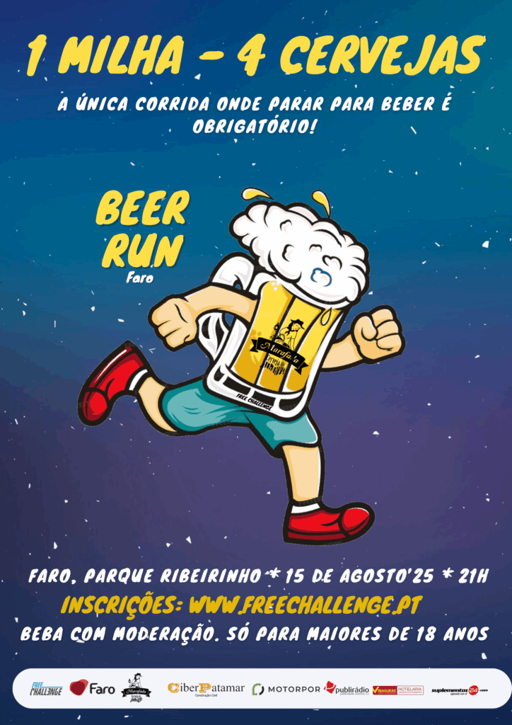 Organisers Free Challenge Associação Desportiva e Sócio-Cultural say Beer Run Faro is inspired by Beer Mile, a 1-mile (1.6 km) drinking race combining running and speed drinking.