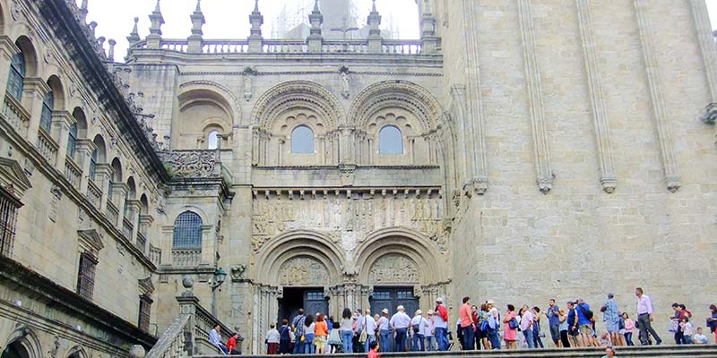 Since then, pilgrims have flooded into Galicia and continue to do so in huge numbers. They follow the ‘Camino de Santiago’, a network of ancient pilgrim routes across Europe, the most famous of which is the Camino Francés, which stretches over 800 kms from near Biarritz. Some set out on the Camino for spiritual reasons, others find spiritual reasons on route whilst the remainder just enjoy the exercise of a strenuous long distance walk. St. James is Spain’s patron saint and is a much-revered figure. His remains are believed to lie under the cathedral and legends abound as to exactly how they arrived in Galicia. The old city centre is charming, with narrow pedestrian-only streets and numerous religious buildings, the best of which is the Monastery and Church of St. Martin Pinário. However, it is the magnificent cathedral that is the magnet for all pilgrims and tourists and it totally dominates the whole town.