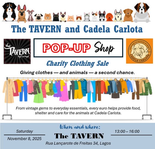 Cadela Carlota is pleased to team up with The Tavern in Lagos for a Charity Clothing Pop-Up Shop on Saturday, November 8, 2025, from 1pm to 4pm.