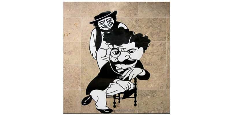 António’s cartoon must have been vindicated, for he was invited to represent Lisbon faces in cartoon form in “azulejos” to decorate the walls of the airport Metro station in Lisbon. When it opened on July 17, 2012, there were 53 cartoon portraits.