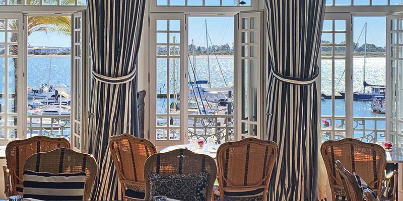This is a heritage hotel in the grand old style, but a small property with just 31 rooms and suites. The design, at the hands of Algarve-based interior designers White & Kaki, reminded us a little of Raffles in Singapore, on a far smaller scale of course, especially in the dining room where wicker chairs, huge feature ceiling fans and the ornate windows overlooking the river lend a tropical-cum-colonial feel to the space.