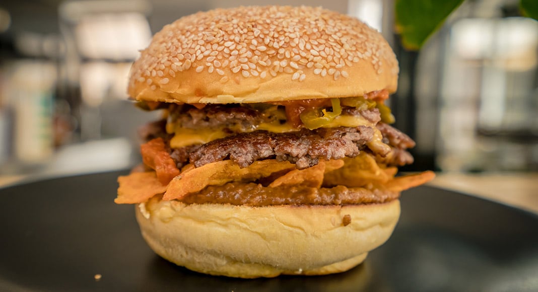 As the phone rings, someone orders two “Sticky Cowboys” and one “My girlfriend is not hungry”, proving how his efforts to have a funny menu have helped to engage with the customers. The 80/20 fat ratio patties are harmoniously combined with different ingredients like pineapple, in the “Confused Hawaiian”, or beans and jalapeños in the most Mexican version called “It’s Nacho Cheeseburger”. Chicken is also a very enticing option and vegans can count on a Beyond Burger served inside a bagel, as a fusion with the sister brand.