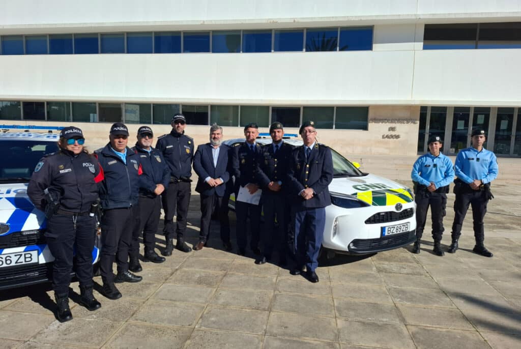 Hugo Pereira, mayor of Lagos, led the ceremony which marked the delivery of the cars to representatives of the two security forces: Colonel Marco Henriques, commander of the GNR’s Faro Territorial Command, and Commissioner Luís Miranda, head of the PSP station in Lagos.