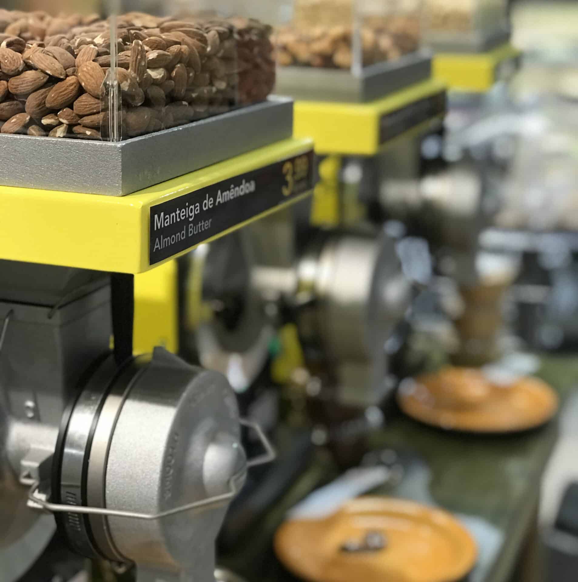 Highlighting 100% natural and healthy fats, the raw ingredients available at the mill are exactly what you take home. The entire process is done by the customer, who can choose almond butter, hazelnut and chocolate spread – which has an advantage over the market leader as it does not contain sugar or palm oil – or peanut butter, a favourite among top athletes.