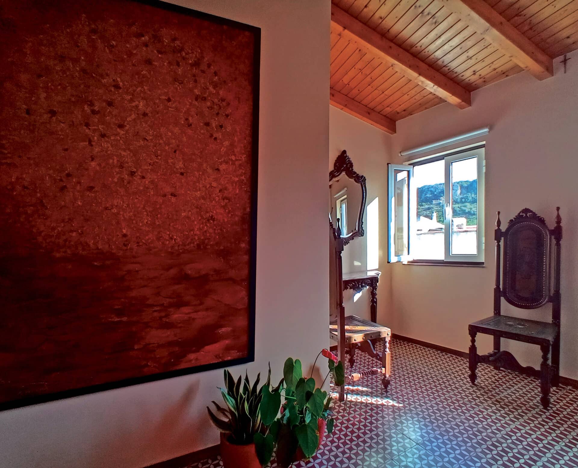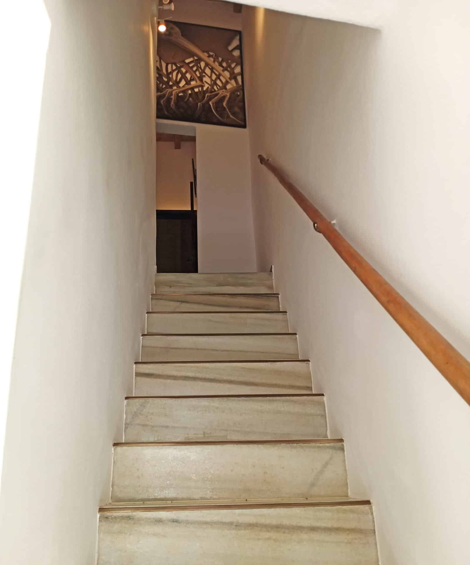 The marble stairs were polished and finished with gold-coloured slats, which added elegance and even received favourable comments from visitors. In the bedroom upstairs, we kept the original floor tiles from the 50s.
