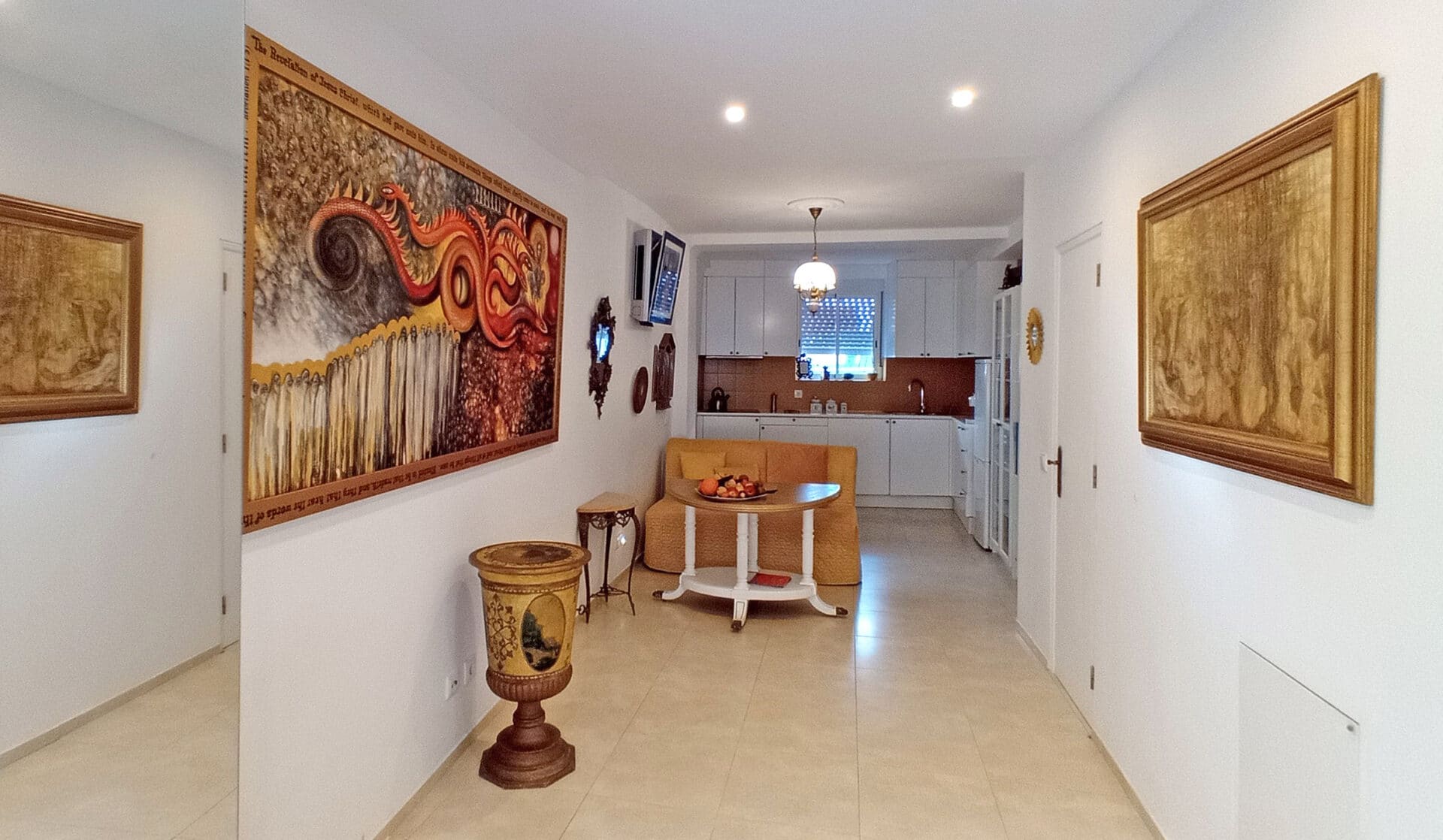 In the same year that we finished the interior, a new IKEA opened in the Algarve, and it was possible to order larger wardrobes with mirrors to size, which optically enlarged the space. The rest of the furniture was found at nearby flea markets or online markets.