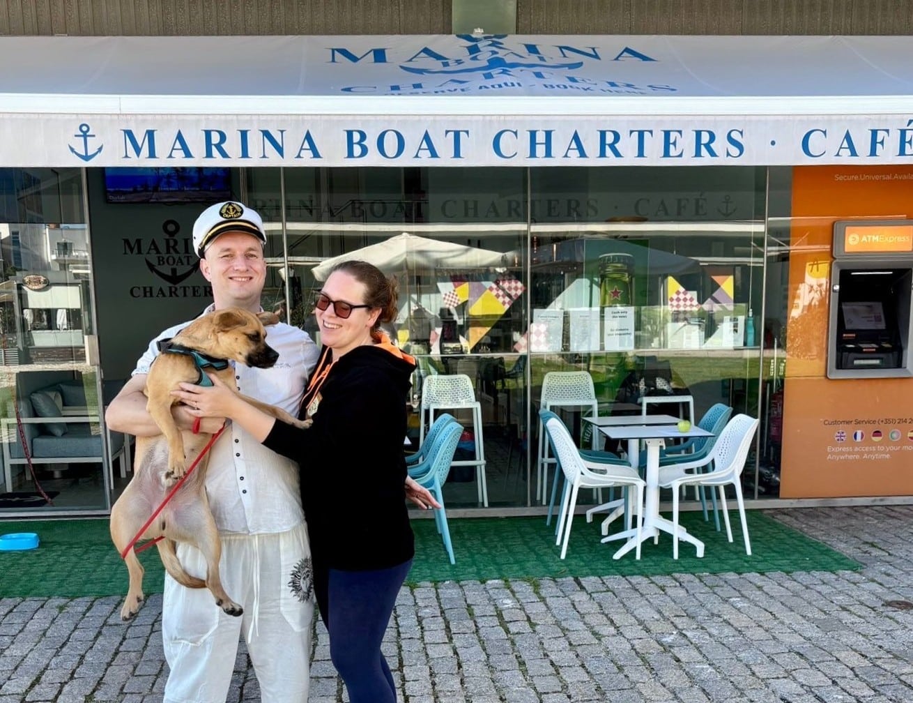 Barão had been in foster with Adam and Shannon, who recently began an exciting new chapter of their own, taking on the Marina Boat Charters Café. Like so many foster families, they started with a clear plan: offer temporary care, help a dog on his journey, and eventually wave him off to his forever home.