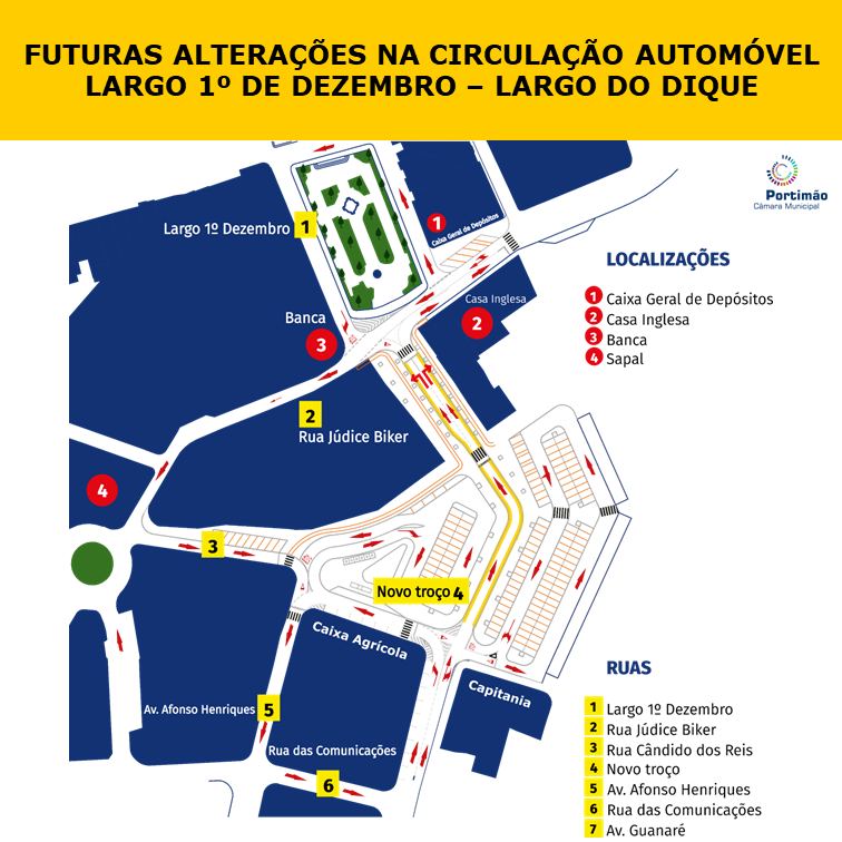 As for drivers wishing to leave the city, they will have to enter Largo do Dique through Avenida Guanaré, next to the Capitania (Captaincy), and use the new road which will take them to Largo 1º Dezembro, where they will have two options: either turn right towards the “old bridge” or turn left towards the Sapal roundabout.