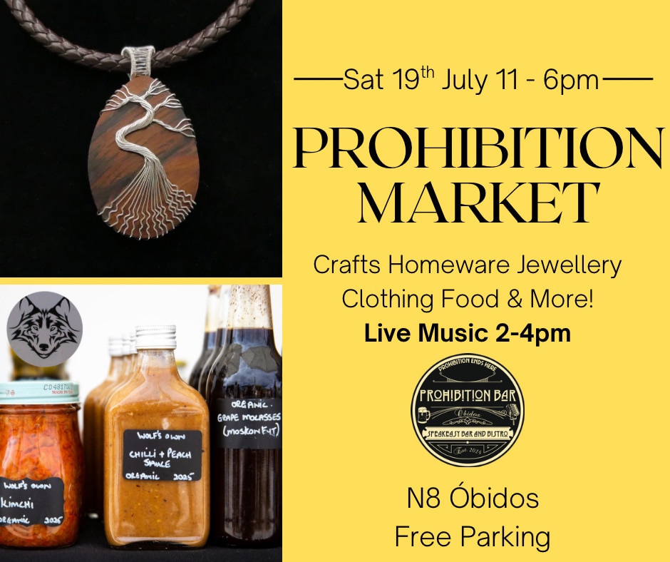 Over 20 stalls are expected to attend the next Prohibition Market, at the Prohibition Bar on the N8 in Óbidos, on Saturday, July 19. Free to enter and next to a large free carpark, the event runs from 11am to 6pm.