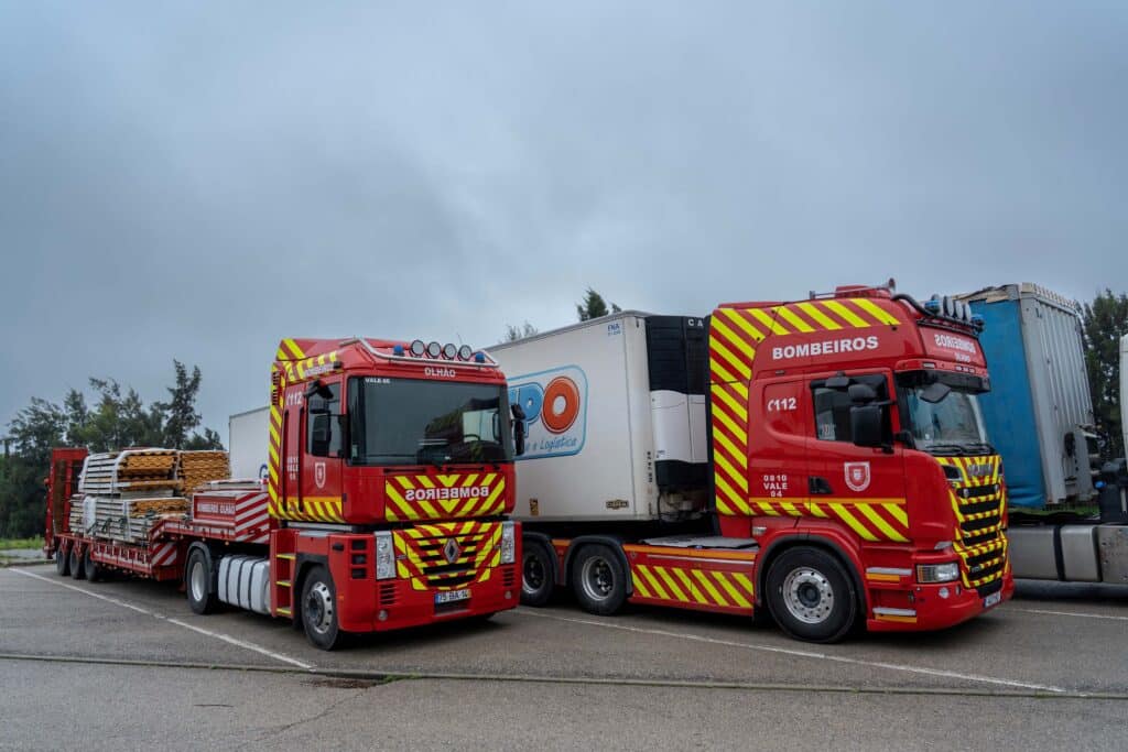 In the early hours of this Wednesday (February 11), four lorries departed from Olhão bound for Leiria – three operated by the Olhão municipal firefighters and one provided by a private company in the municipality.