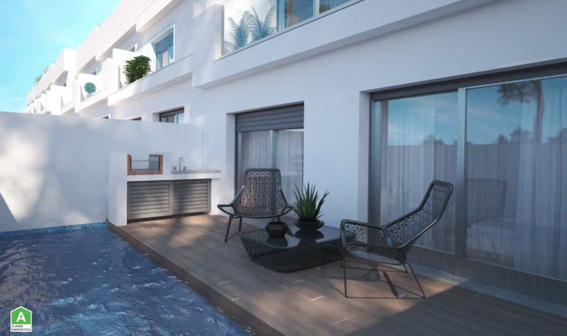 A new investment opportunity are these three bedroom townhouses located on the private condominium Bella Vista. They each come with their own individual swimming pools, large terraces and fantastic views of the Ria Formosa.