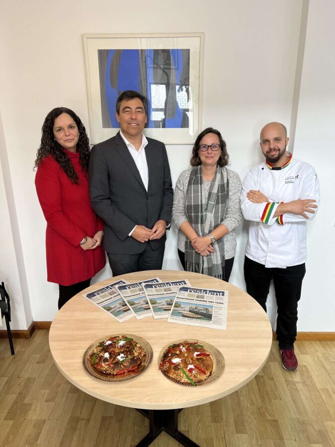 Portimão Hotel and Tourism School gifted two delicious bolo-rei Christmas cakes, made by the school’s students, to the Resident team this Friday morning.