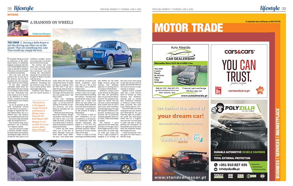 The Cullinan I (once again) drove two weeks ago, now here in Portugal, was a Black Badge version in Salamanca Blue. At 5.34m long, 2m wide and 1.82m tall, it was a sight to behold. It weighed in at 2734kg. On the road, it was never going to feel like the last word in agility. But it did feel like the last word in luxury. In engineering. In majesty.