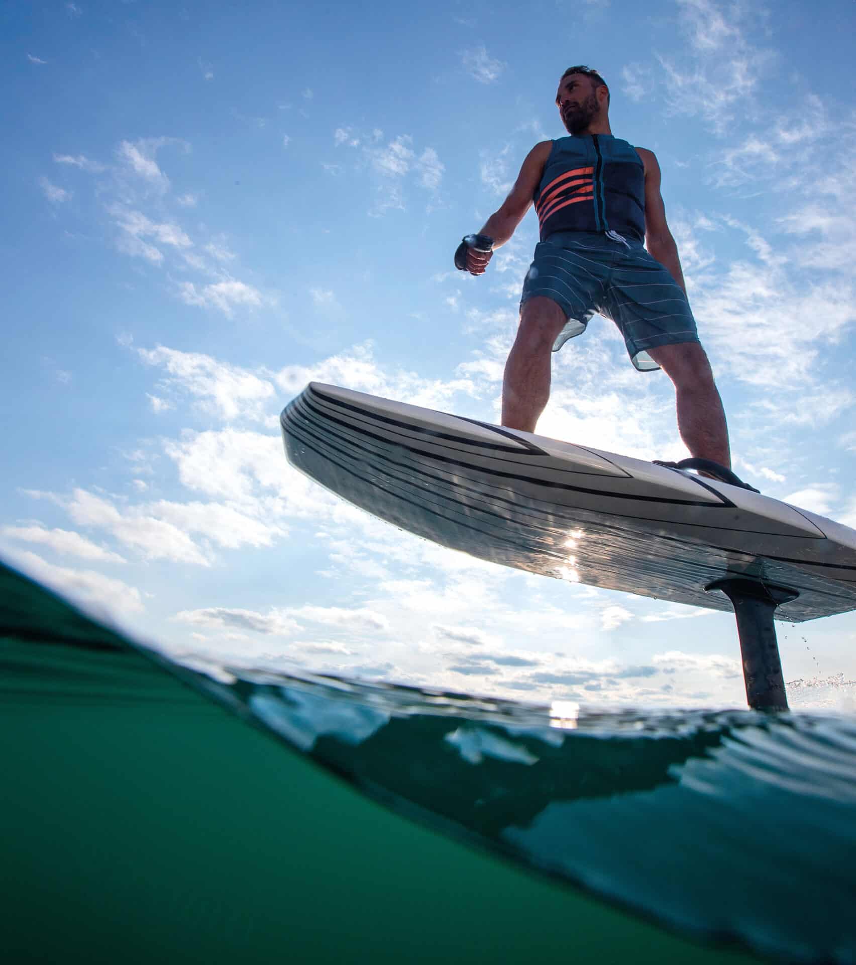 The latest trend in watersports, eFoil surfing lets you surf above water and catch even the smallest waves, thanks to a hydrofoil on the tail and an electric propeller just above the wing.