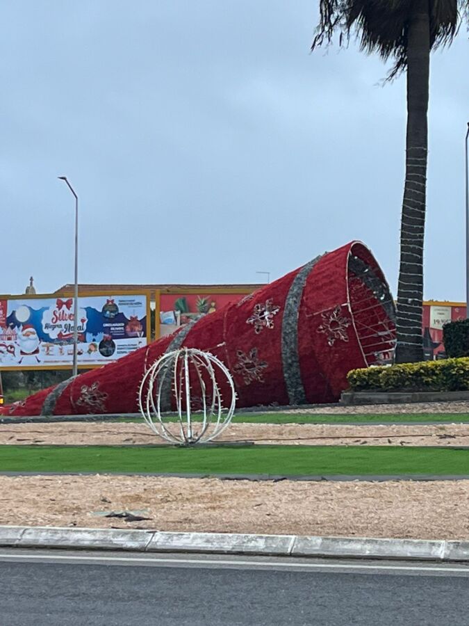 This Tuesday morning’s strong winds led to the toppling of a Christmas tree on a roundabout in Lagoa.