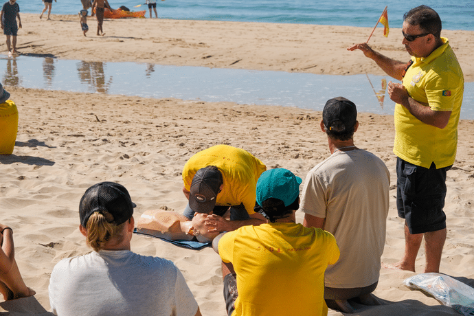 The expanded format is designed for those who completed the basic Surf & Rescue course since 2020. This year, it includes INEM certification in Basic Life Support with Defibrillator and encourages the installation of life-saving equipment such as AEDs in surf schools.