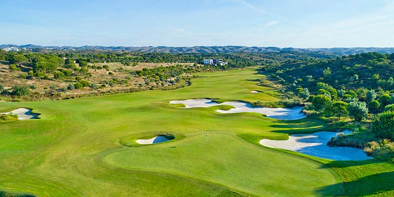 This challenging 27-hole layout is built on attractive rolling terrain with pines and a variety of other tree species. Views of the Guadiana River and the Atlantic Ocean against a