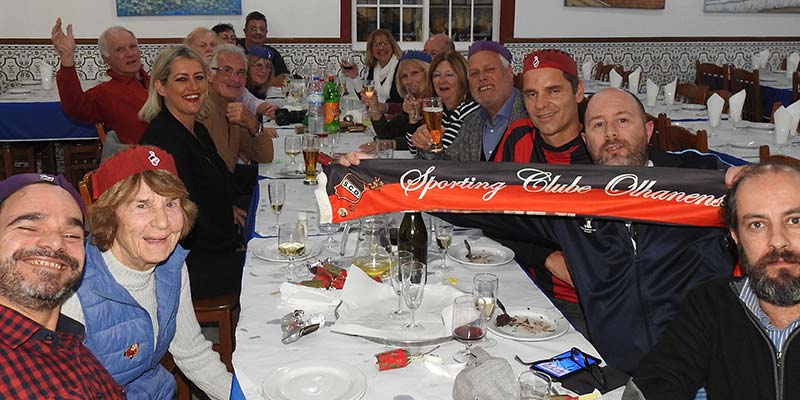 Olhanense Expat fans together with Portuguese friends enjoyed a pre-Christmas meal following the game against Amora. In the party were Vicki and Larry Bawden celebrating their 54th wedding anniversary and