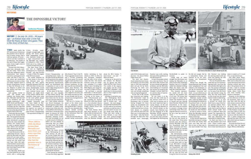 The organisers, so sure a German car would win, didn’t have a copy of the Italian national anthem. Nuvolari, though, kept one as a lucky charm and the Marcia Reale echoed louder than ever to celebrate what was named The Impossible Victory, a triumph against all odds and, objectively, still impossible to explain today.