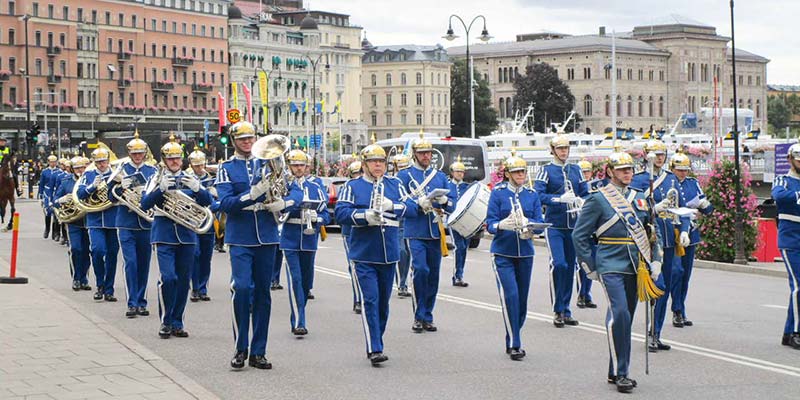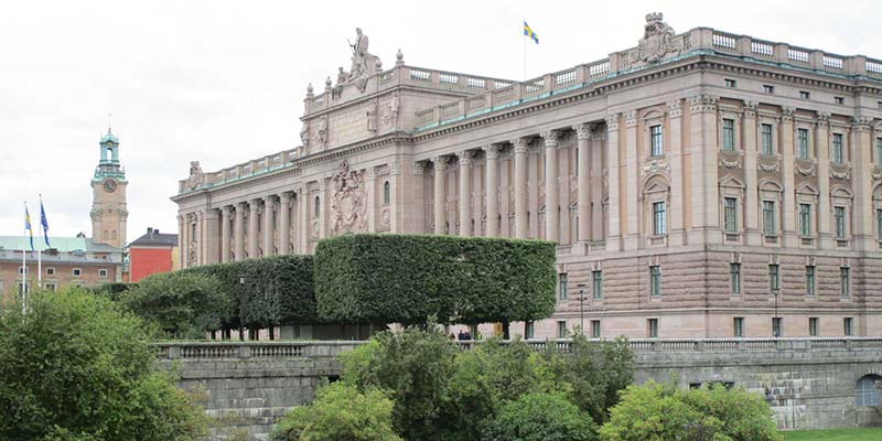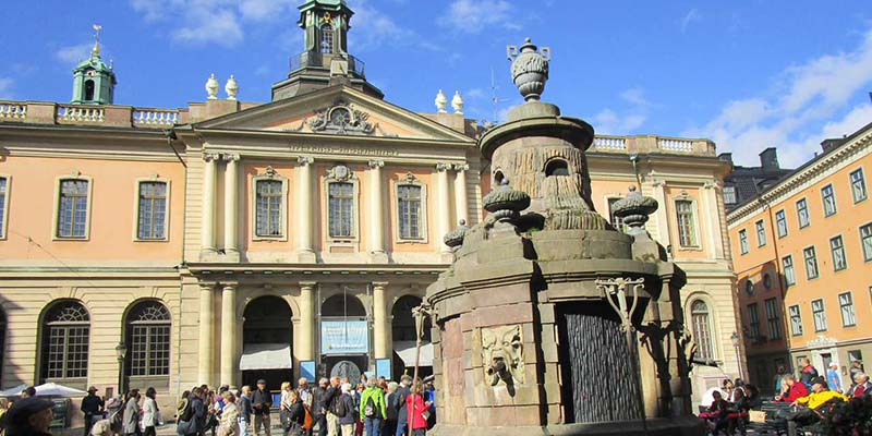 From the harbour, the Baroque-style Royal Palace (Kungliga Slottet) dominates Gamla Stan’s skyline. This huge and rather ugly building is one of the largest royal palaces in the world, and is used for most of the country’s official receptions. The Changing of the Guard Ceremony, together with a Military Band, takes place at the Palace daily in summer. Much more appealing to the eye is the stunning architecture of the Riksdagshudet (Parliament Building), right next door to the Palace.