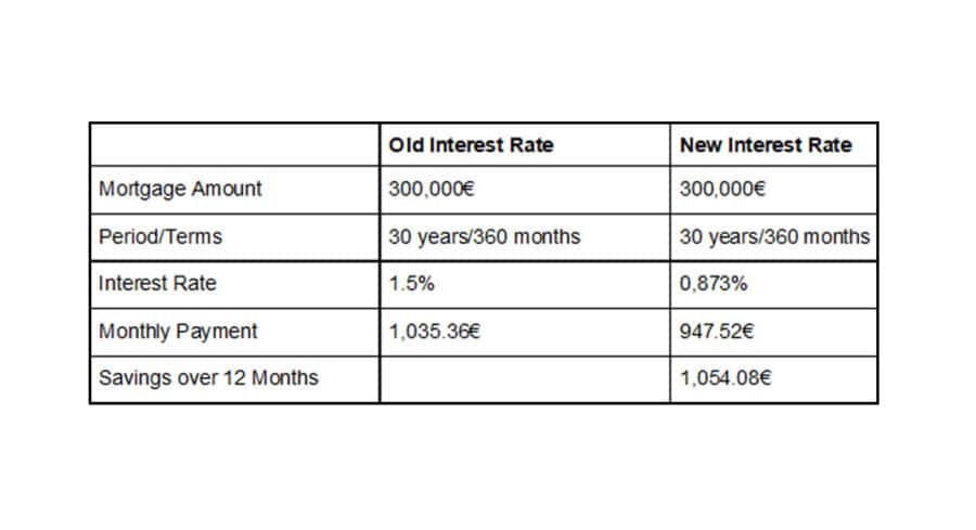 To give you an idea of the savings that are possible on a mortgage rate of 300,000€, take a look at the simulation below: