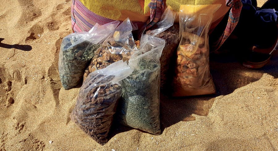 “First, we collect the amount of the sample that we need and identify the rock, if possible. At home, at our studio or at the lab, we reduce the size of the rock.
